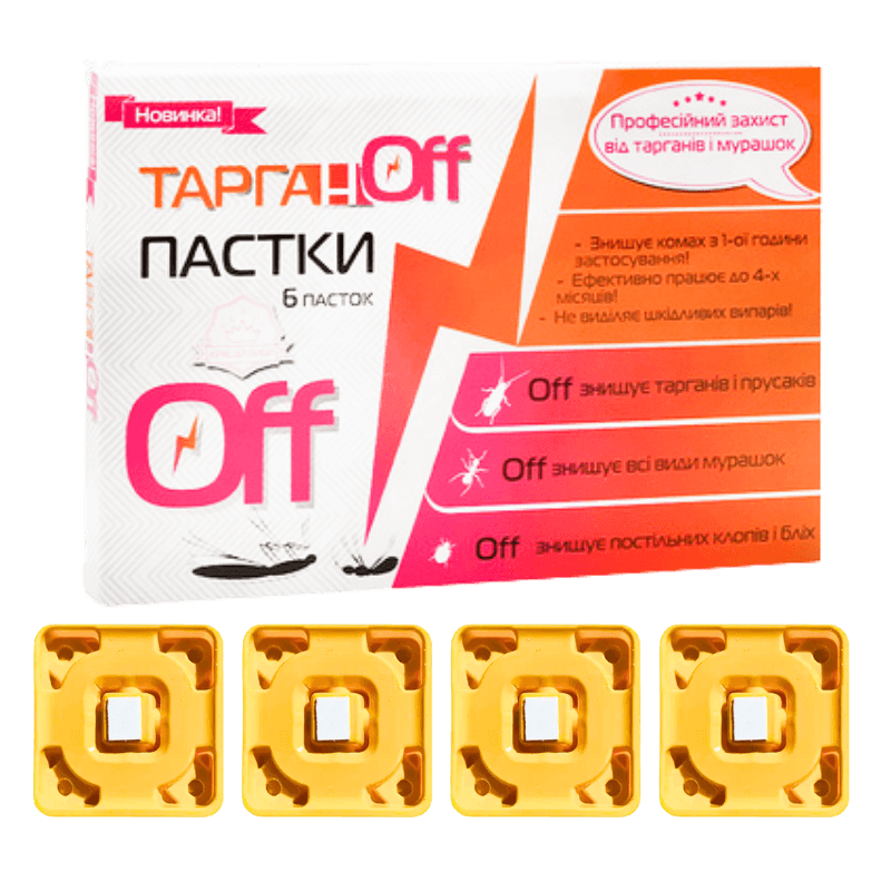 Ловушка Targanoff предназначена для эффективной борьбы с таракана́ми (прусаками), а также с другими ползающими насекомыми — муравьями, постельными клопами и блохами. Средство обеспечивает быстрый профессиональный эффект, первые результаты заметны уже в течение первого часа после установки, а защита сохраняется до 4 месяцев.