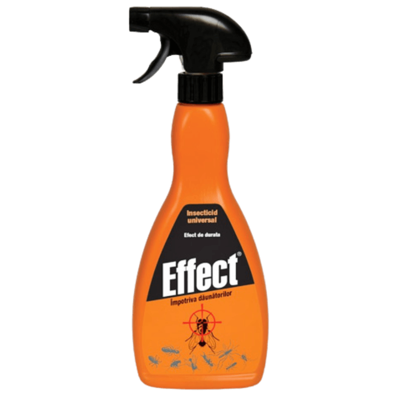 Спрей инсектицид Effect 500 мл — эффективное универсальное средство от насекомых для летающих и ползающих вредителей. Препарат действует контактно, обеспечивая быстрое уничтожение насекомых после обработки поверхностей.